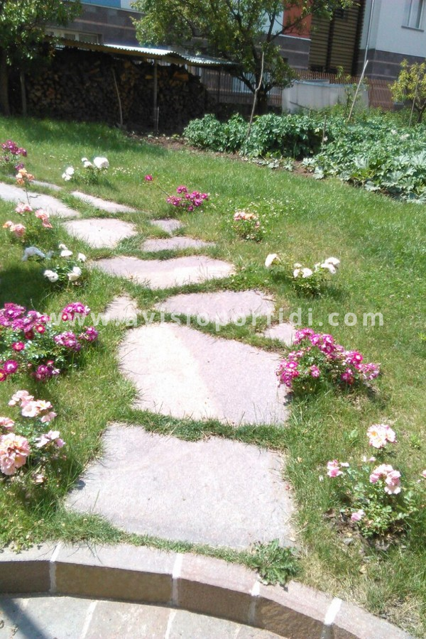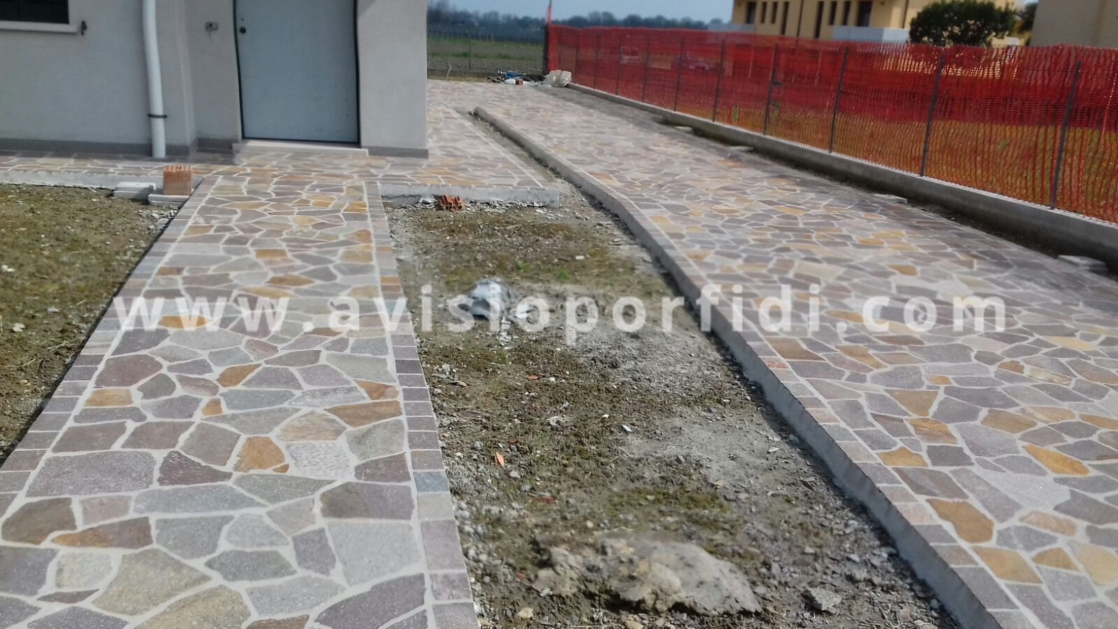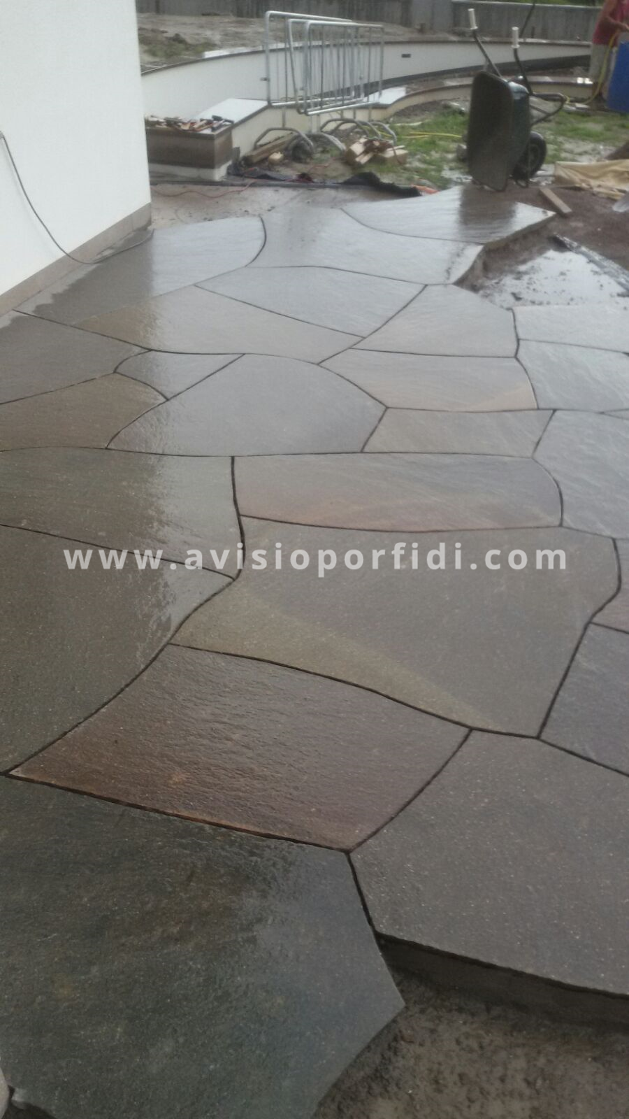 lastre di porfido di forma irregolare e di spessore e dimensioni differenti.